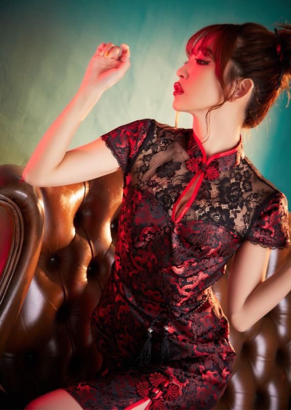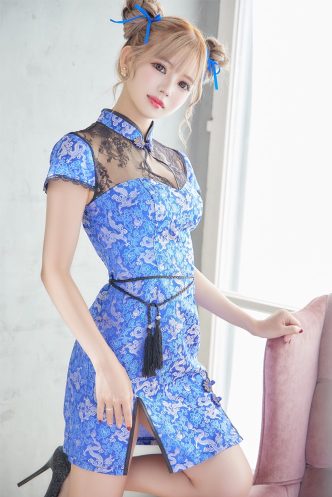 再入荷!【SMLサイズ/3カラー/2点セット】龍柄 レース チャイナドレス スリット チャイナ服 ミニ コスプレ イベント ハロウィン キャバドレス [1183]