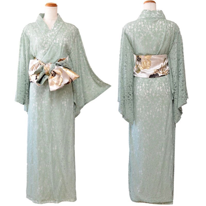 残りわずか!【SALE40%OFF】【4カラー/2点セット】総レース ロング 美胸 浴衣風 豪華 帯 花魁 着物 ドレス コスプレ イベント ハロウィン キャバドレス