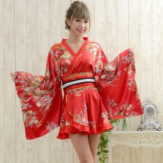 再入荷!ゴールドパイピングフリル花車輪サテンミニ着物ドレス