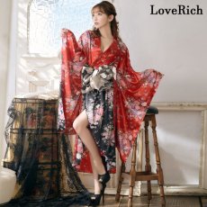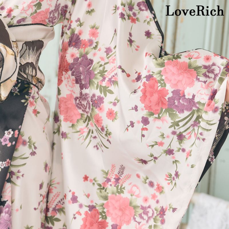 再入荷!【3カラー/2点セット】バイカラー 花柄 和柄 ツートン 豪華 帯 花魁 着物 ドレス コスプレ イベント ハロウィン キャバドレス [1198]