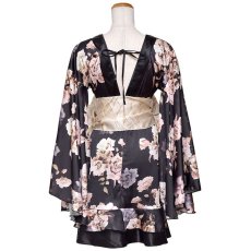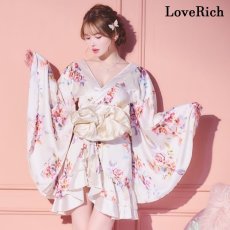 再入荷!【4カラー/2点セット】 花柄 ミニ フリル オフショル 豪華 帯 リボン 花魁 着物 ドレス コスプレ イベント ハロウィン [1273]