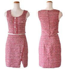 タイトなシルエットで、女性らしいボディラインを美しく引き立てるセットアップツイードドレス