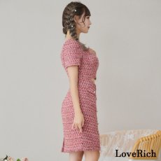 【SALE30%OFF】【SMLサイズ】ツイード ジップ 袖あり 背中隠し 肌魅せ ボタン タイト ミニドレス キャバドレス [1303]