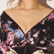 【高級ライン】【2カラー/2点セット】蝶々柄 フリル 花柄 ロング 豪華 帯 花魁 着物 ドレス コスプレ ハロウィン キャバドレス [1283]