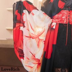 SALE30%OFF!【高級ライン】【2点セット】シフォン 花柄 レース コルセット風 レースアップ 大きな帯リボン ロング 豪華 花魁 着物 ドレス コスプレ イベント ハロウィン [1340]