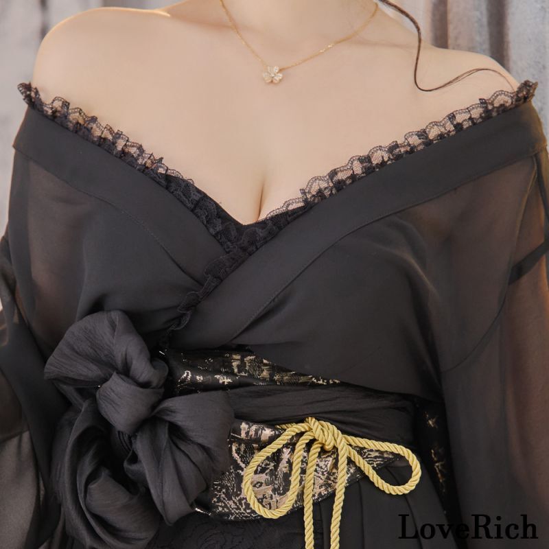 【送料無料!】【高級ライン】【3点セット】シフォン レース ミニスカート ロング 豪華 花魁 着物 ドレス コスプレ イベント ハロウィン [1324]