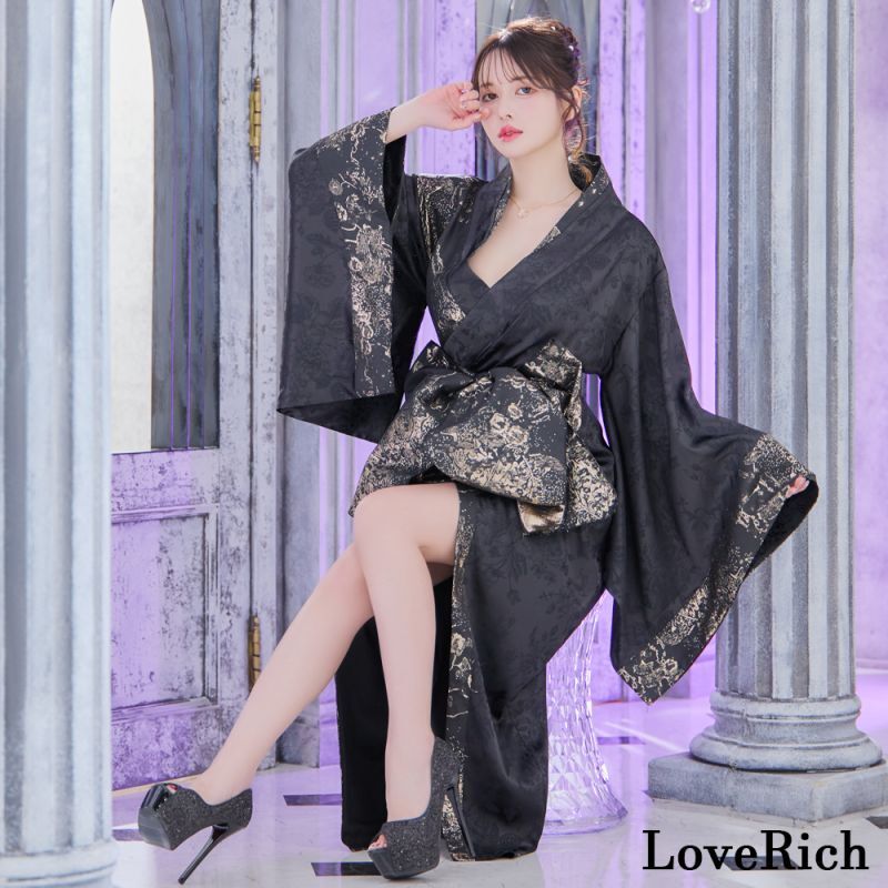 【3カラー/2点セット】和柄 花柄 オフショル ロング 豪華 帯 リボン 花魁 着物 ドレス コスプレ イベント ハロウィン
