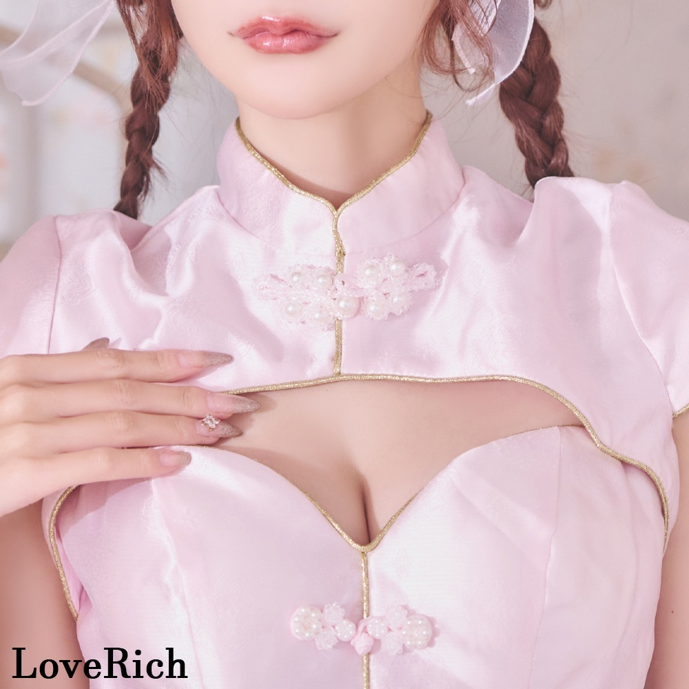 【SMLサイズ/2カラー/2点セット】バストカット スリット 美胸 谷間魅せ 花柄 美脚 チャイナドレス チャイナ服 ミニ コスプレ イベント ハロウィン キャバドレス [1269]