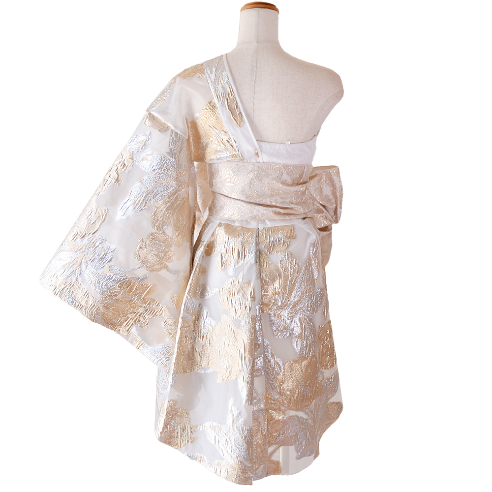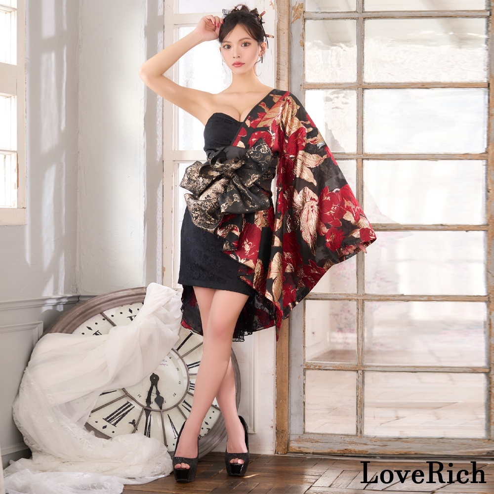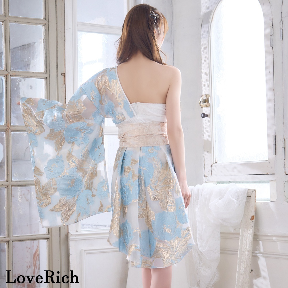 【高級ライン】【4カラー/2点セット】ワンショル アシンメトリー 花柄 レース ミニ 豪華 帯 花魁 着物 ドレス コスプレ ハロウィン キャバドレス