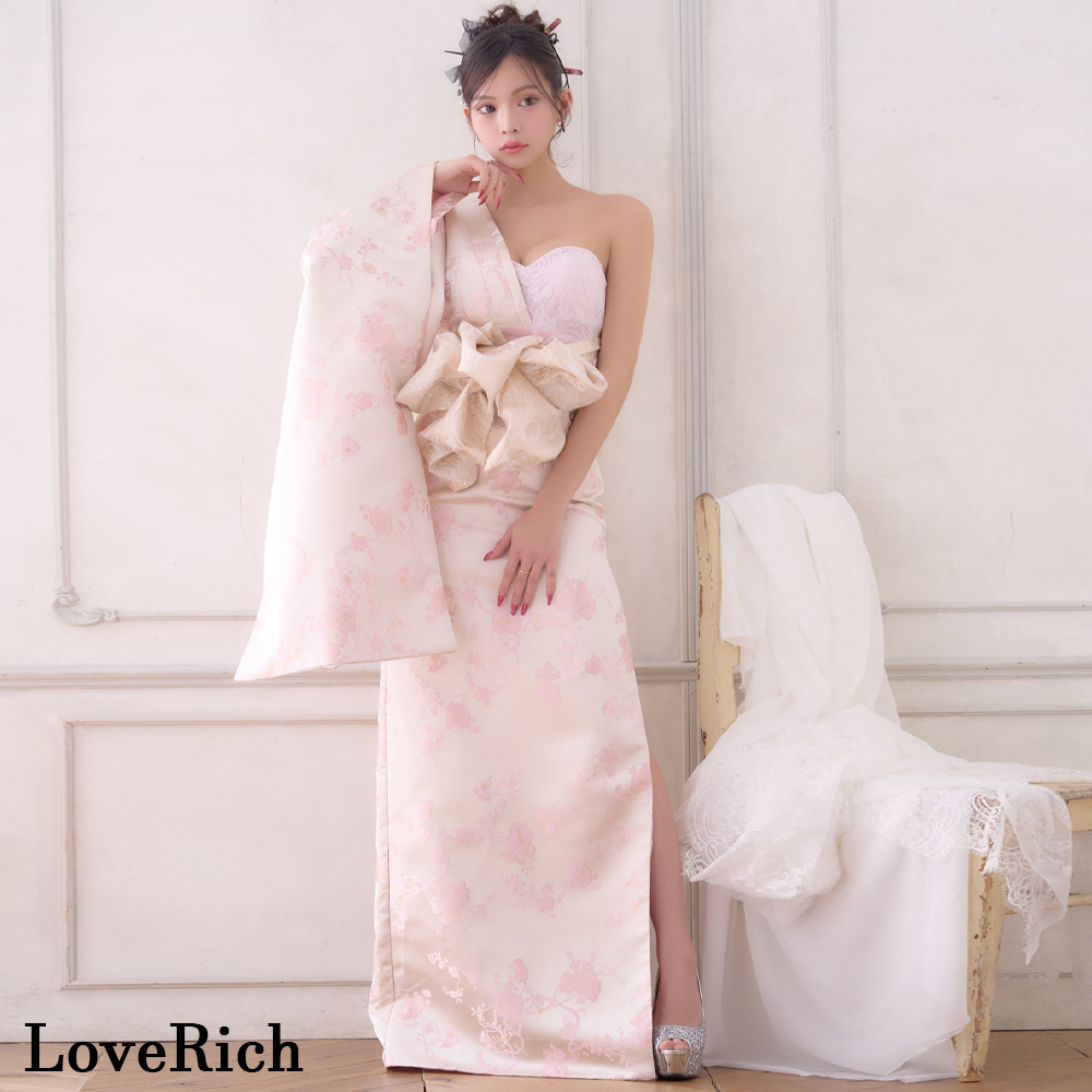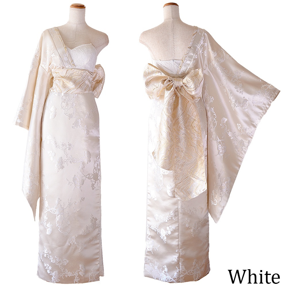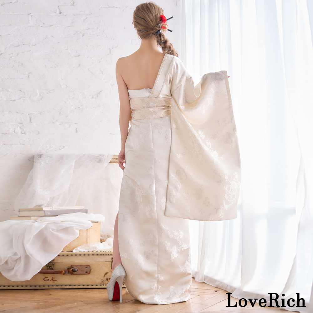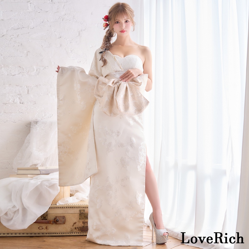 送料無料!【高級ライン】【2カラー/2点セット】ワンショル アシンメトリー 花柄 スリット 豪華 帯 花魁 着物 ドレス コスプレ ハロウィン キャバドレス [1522]