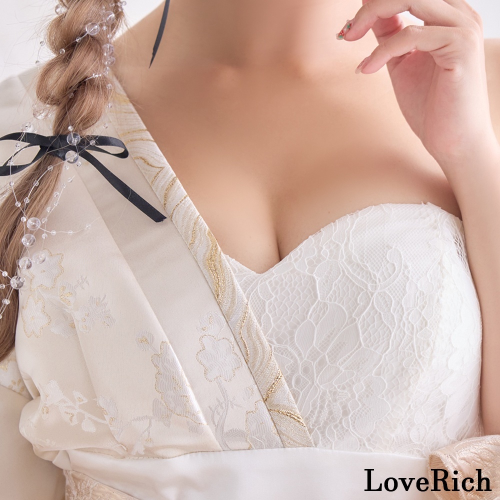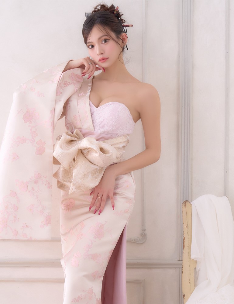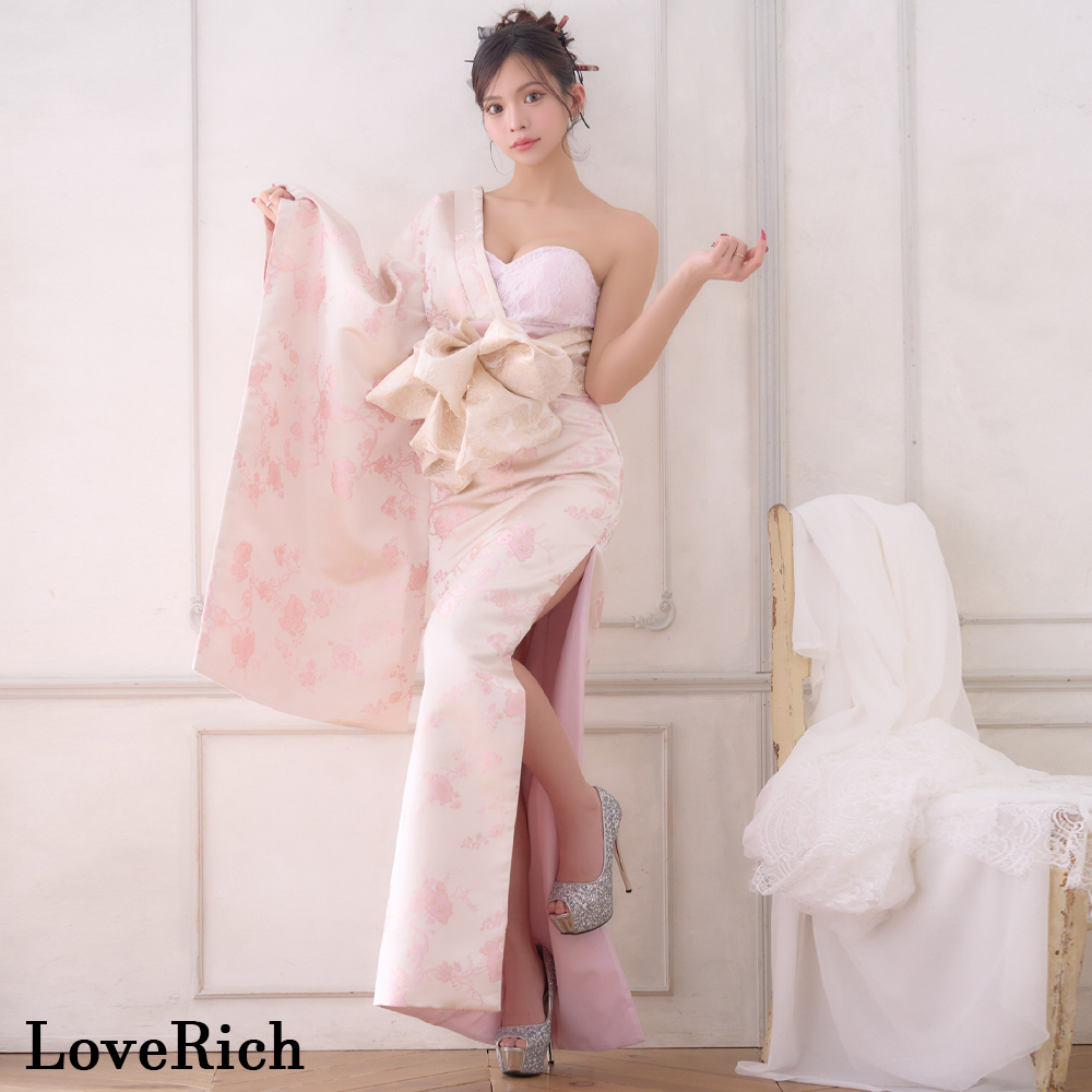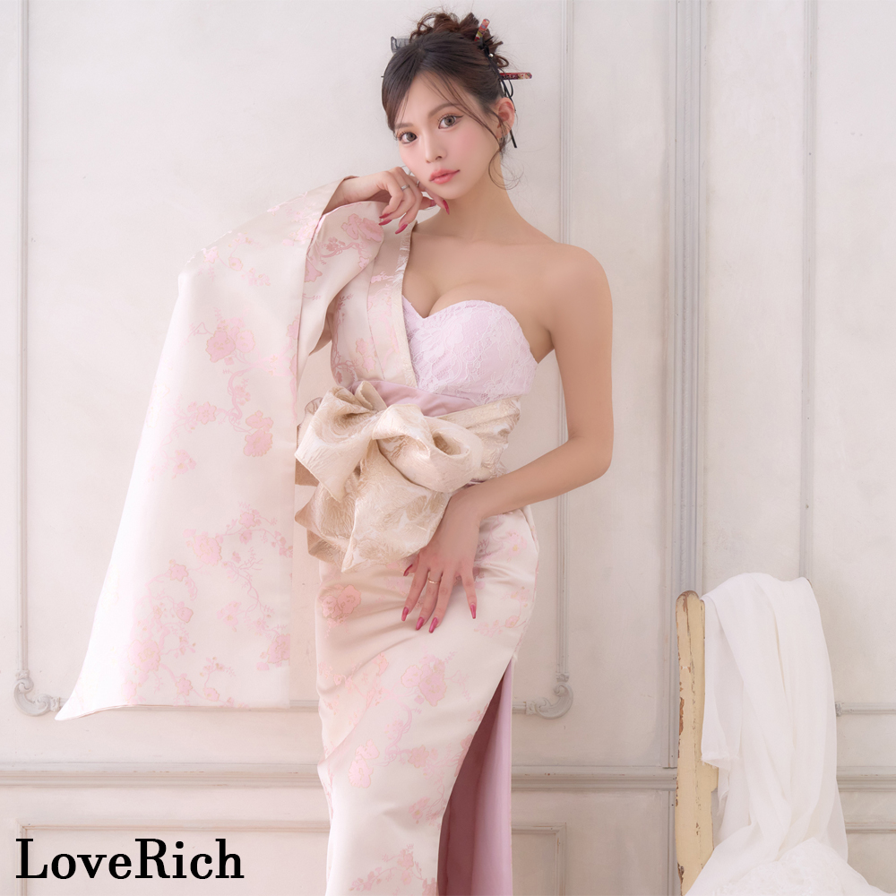 送料無料!【高級ライン】【2カラー/2点セット】ワンショル アシンメトリー 花柄 スリット 豪華 帯 花魁 着物 ドレス コスプレ ハロウィン キャバドレス [1522]