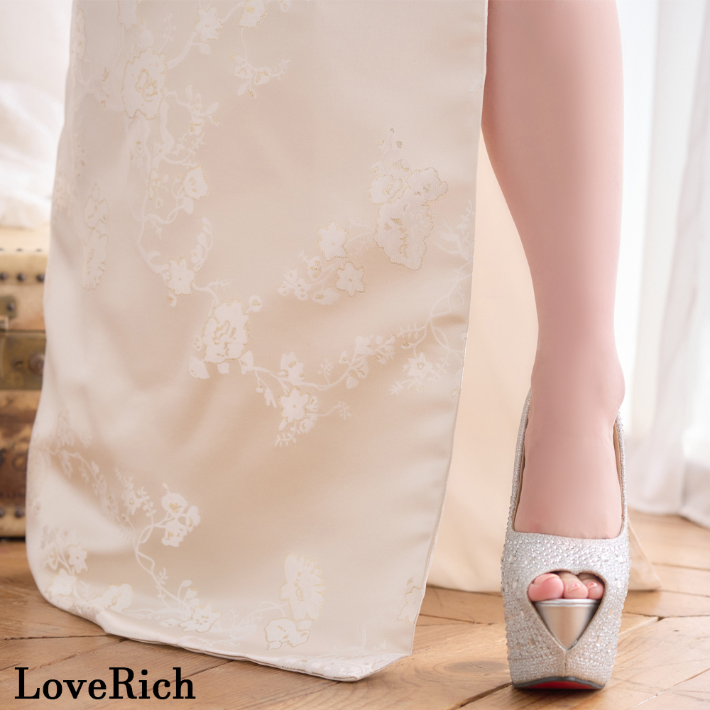 スリット部分は、脚を見せることで少しのセクシーさをプラスします。