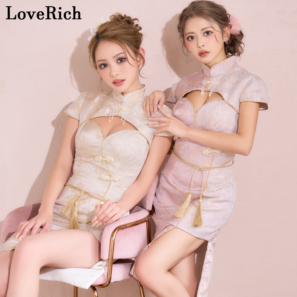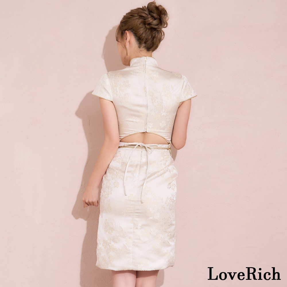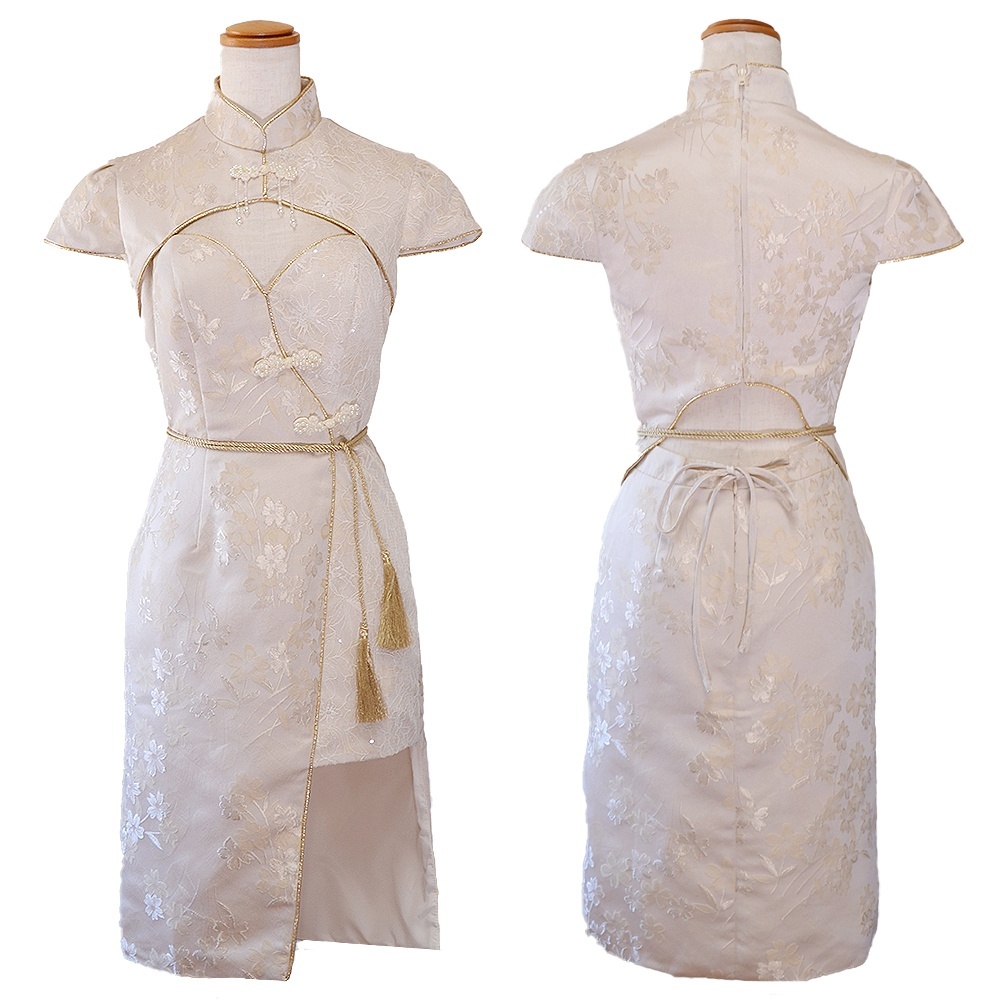 【SMLサイズ/3カラー/2点セット】 アシンメトリー 花柄 レース バックスタイルカットデザイン チャイナドレス チャイナ服 ミニ ミディアム コスプレ イベント ハロウィン キャバドレス