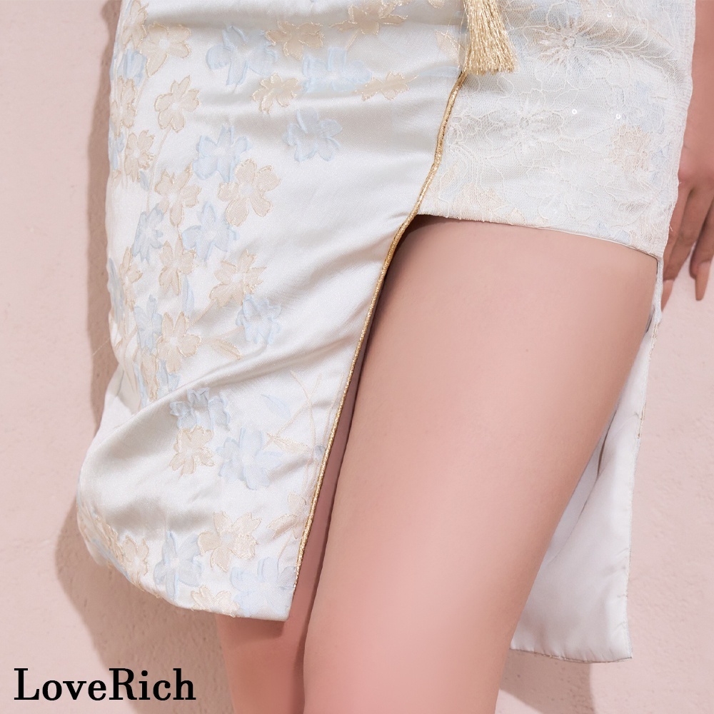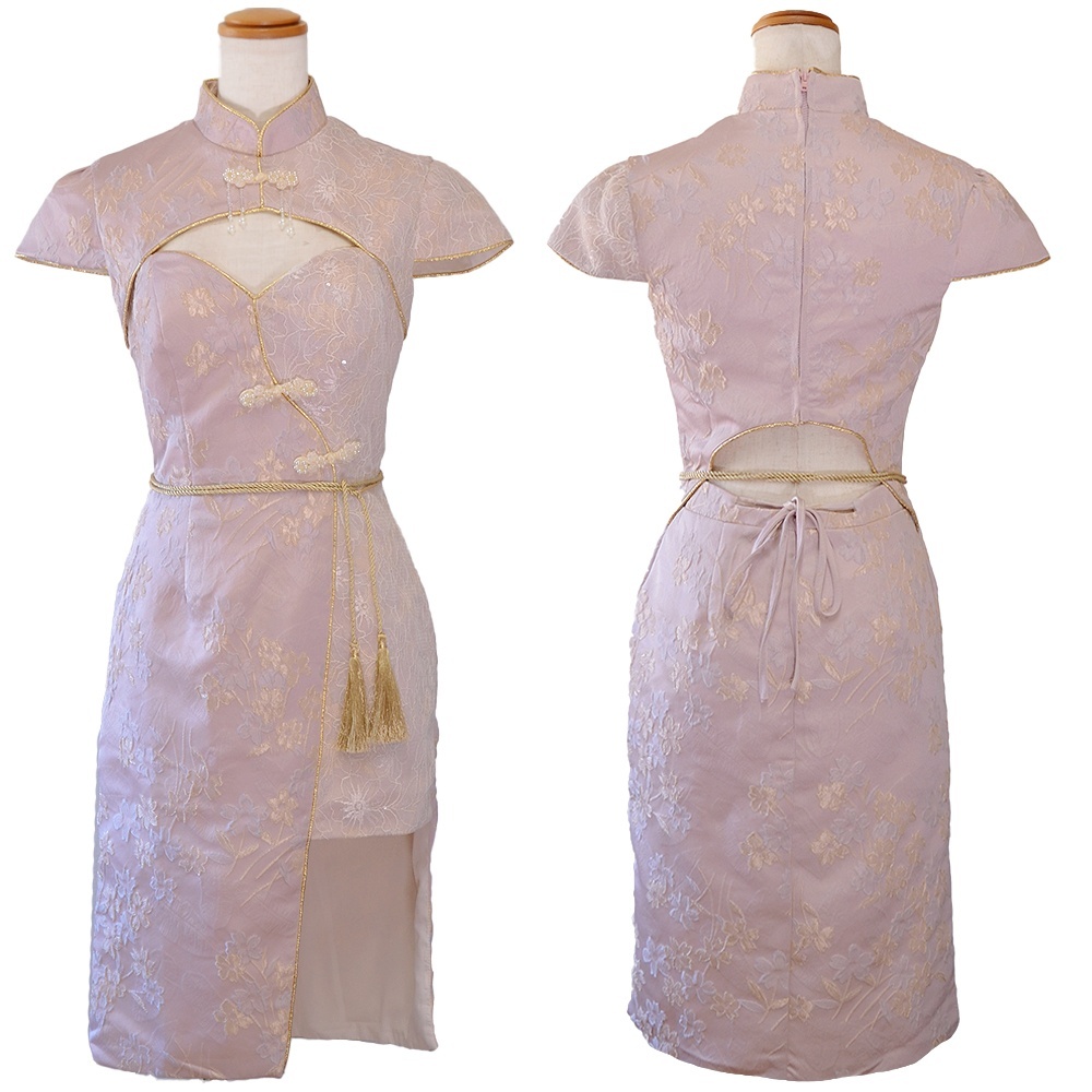 【SMLサイズ/3カラー/2点セット】 アシンメトリー 花柄 レース バックスタイルカットデザイン チャイナドレス チャイナ服 ミニ ミディアム コスプレ イベント ハロウィン キャバドレス [1567]