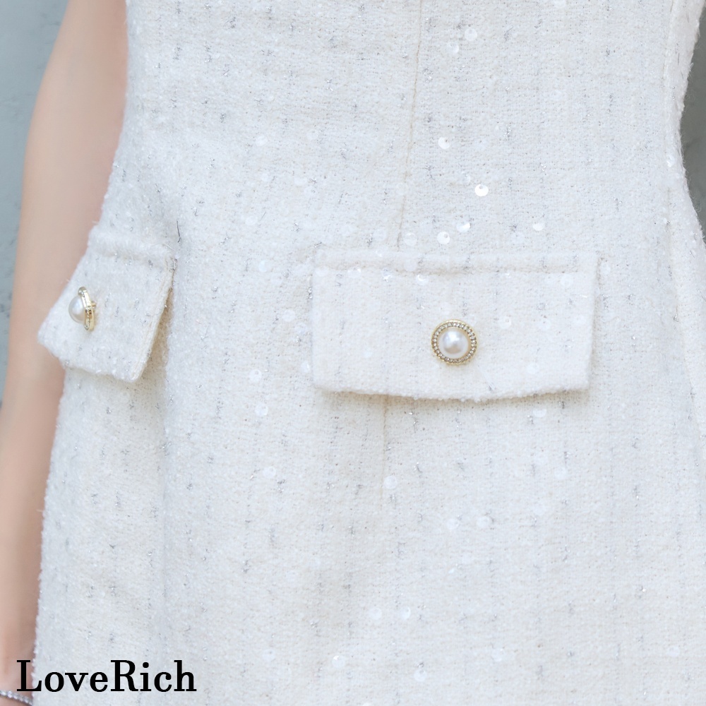 繊細に輝くスパンコール生地が、動くたびに上品な艶を放つ高級感たっぷりのミニドレス。
