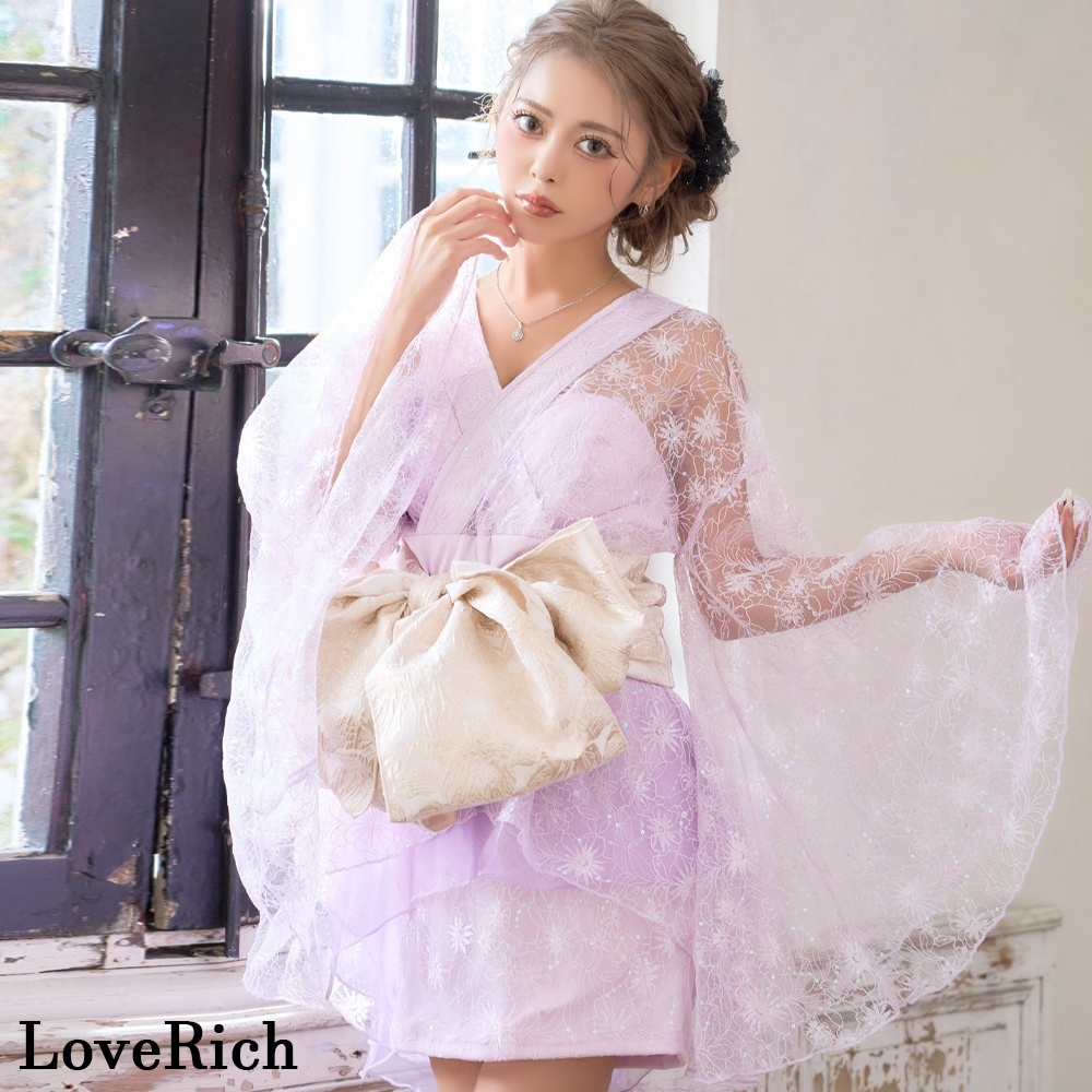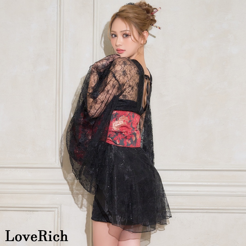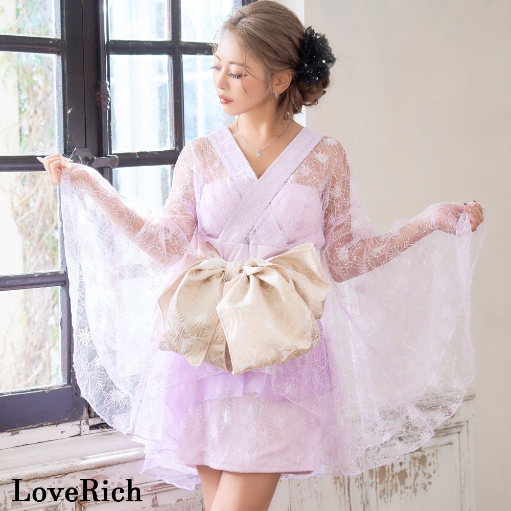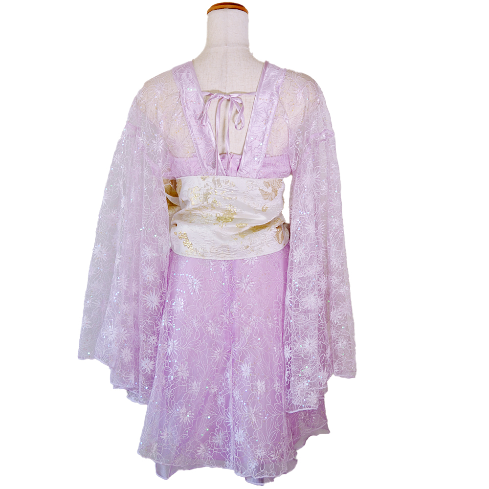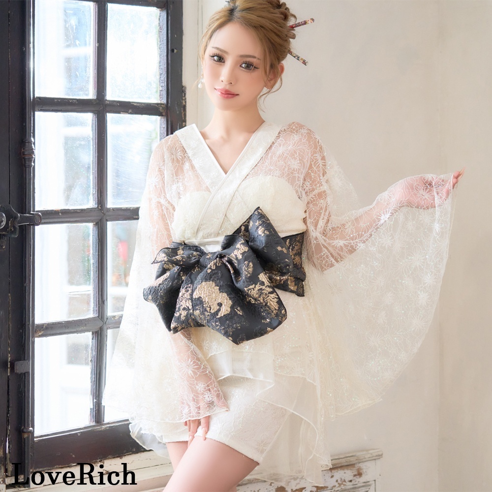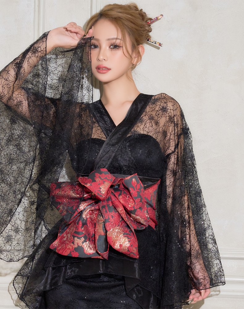 【高級ライン】【2点セット】煌めきを纏う スパンコール レース ミニ 豪華 帯 花魁 着物 ドレス コスプレ ハロウィン キャバドレス [1547]
