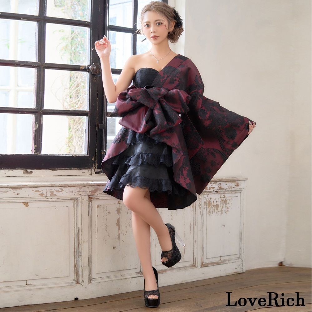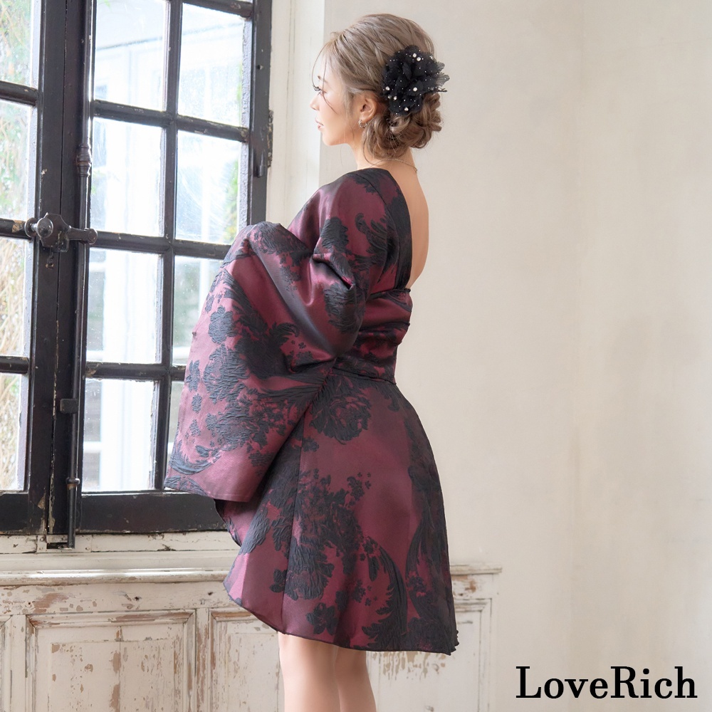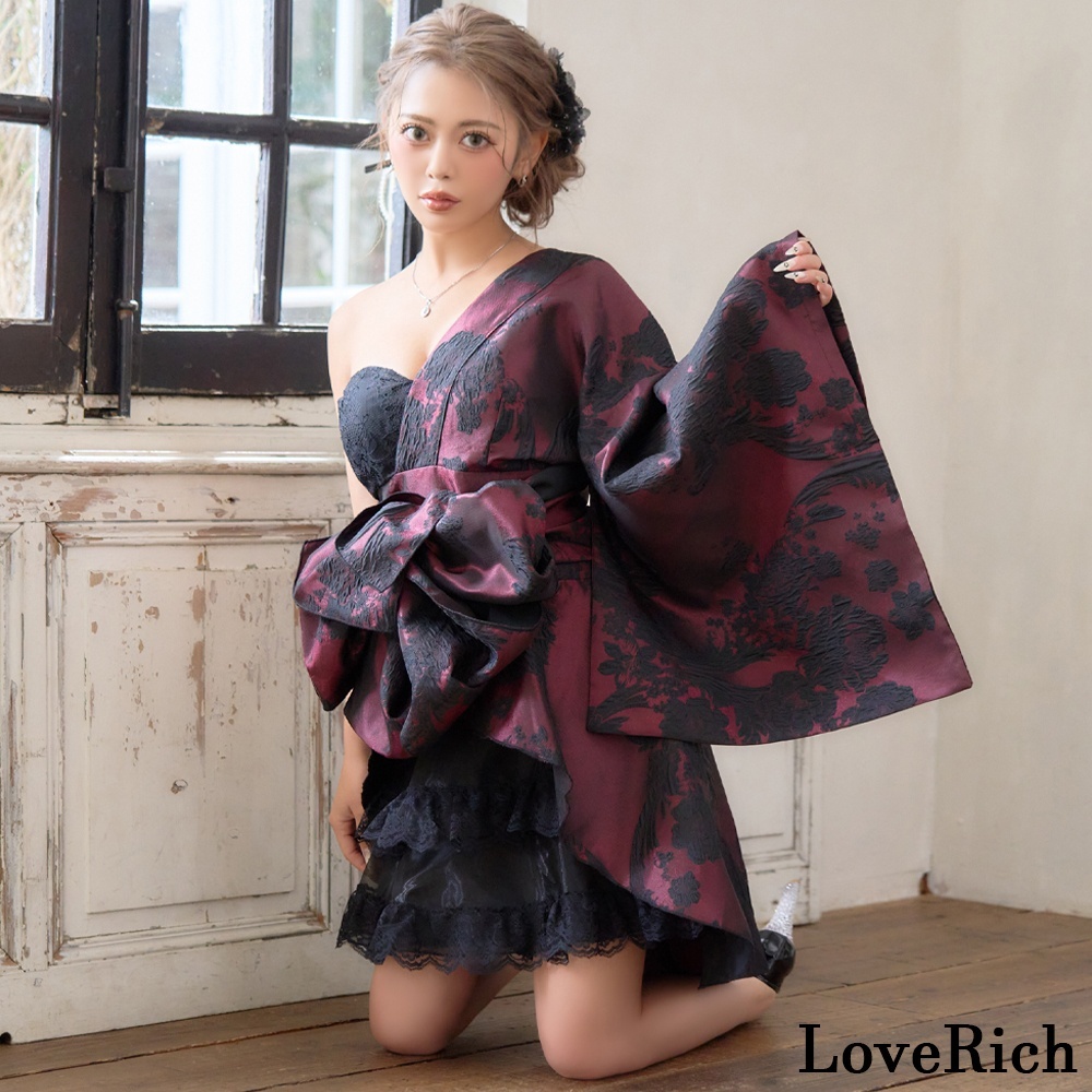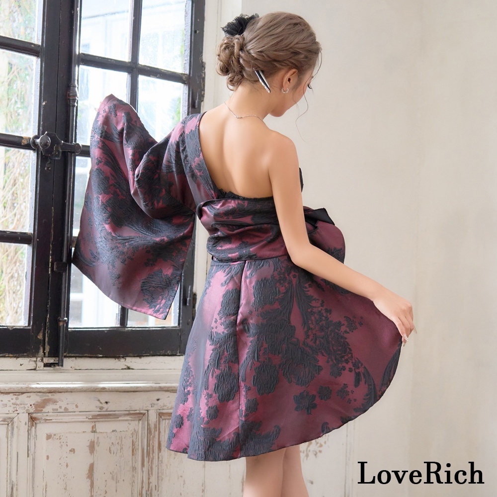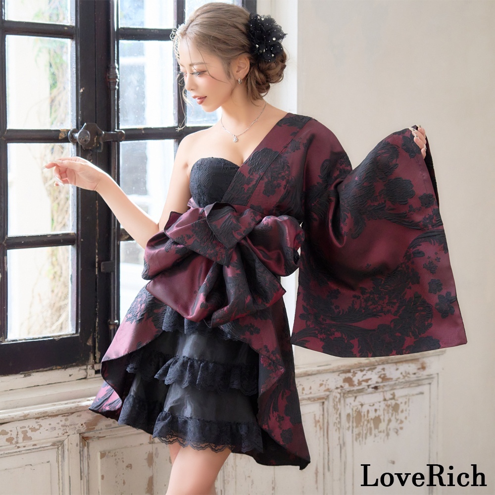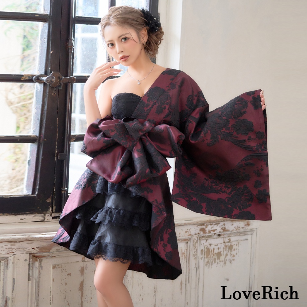 深みのあるボルドーカラーにブラックのフラワー柄が映える花魁ドレス。