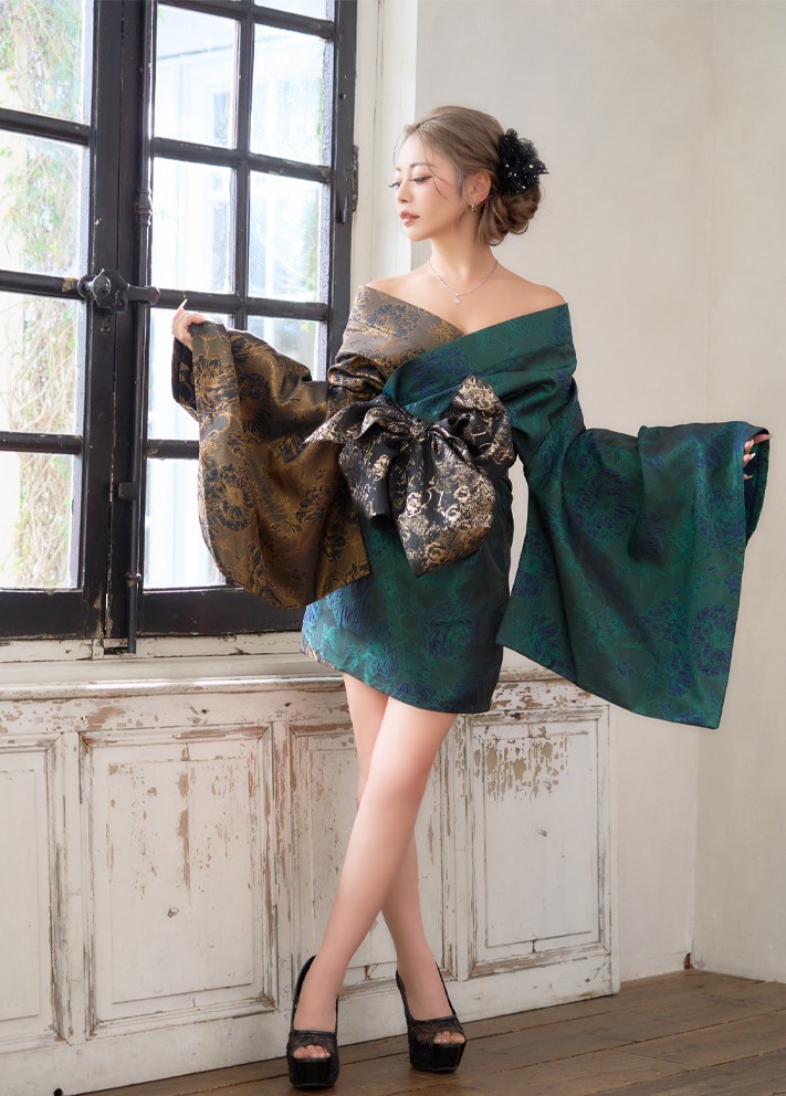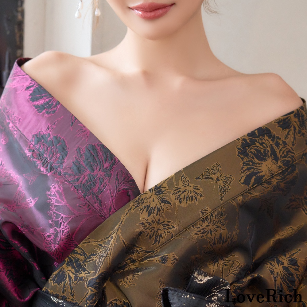 繊細な蝶々柄と花柄ジャガードが織り込まれた花魁ドレス。