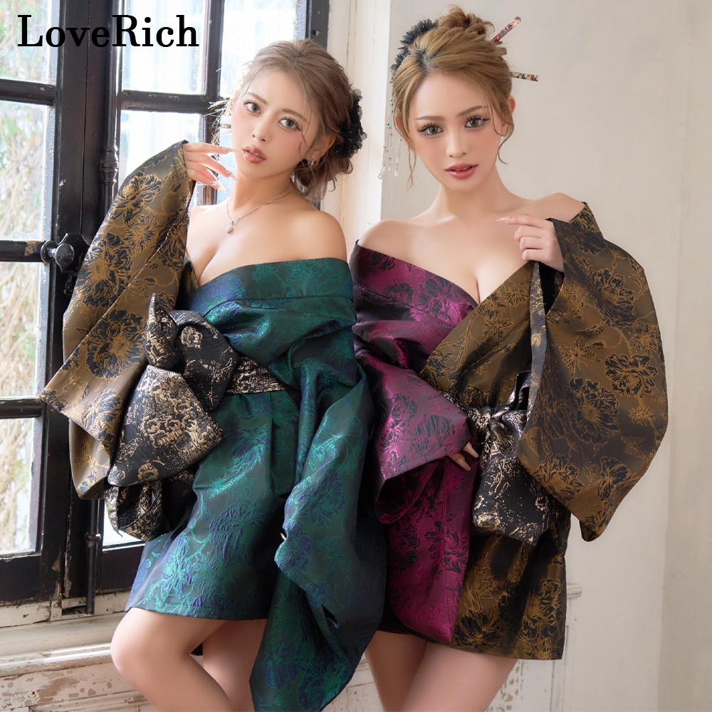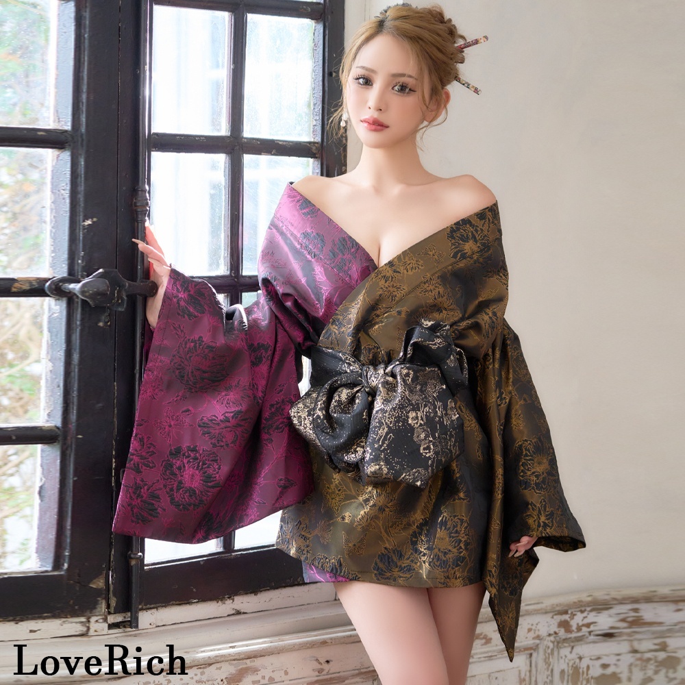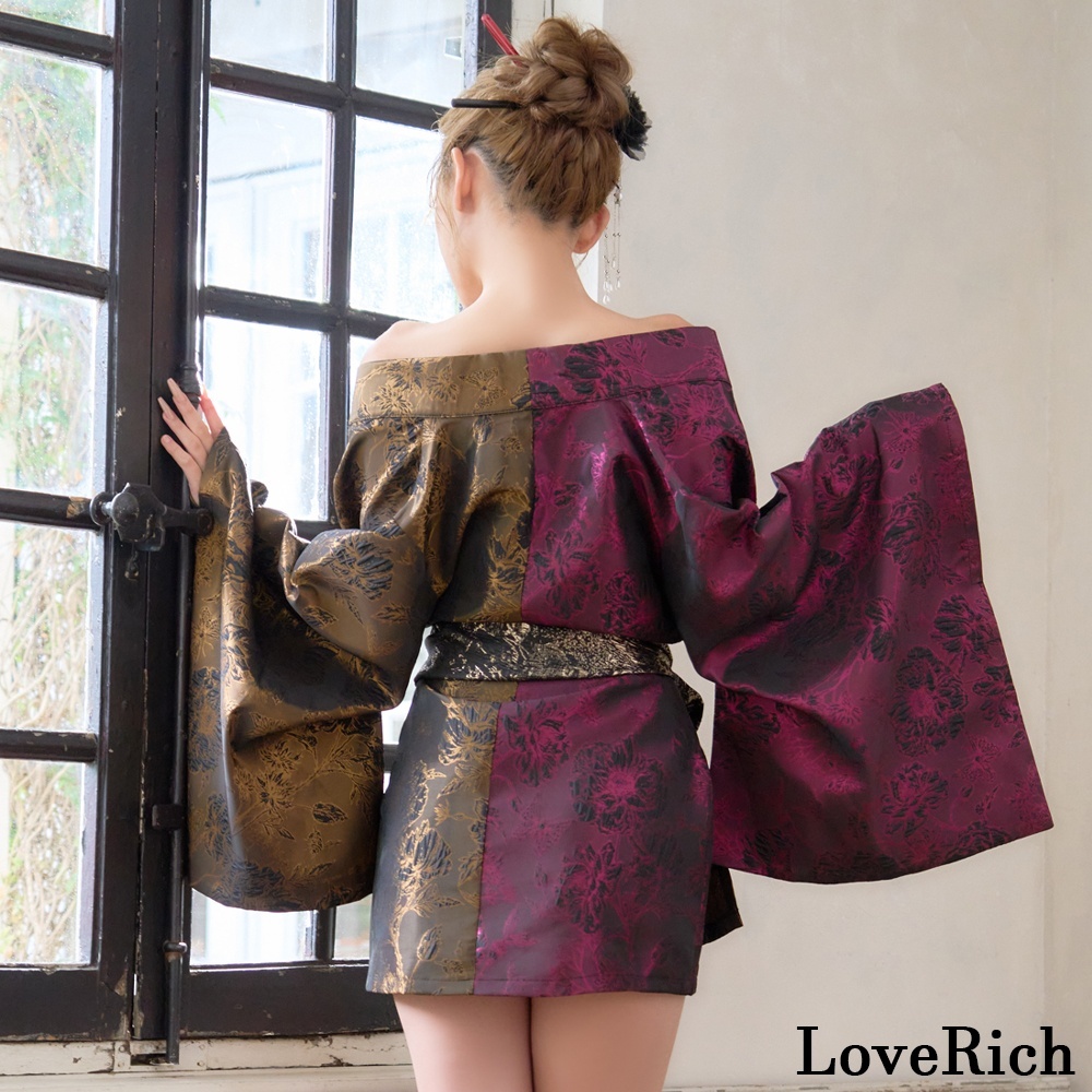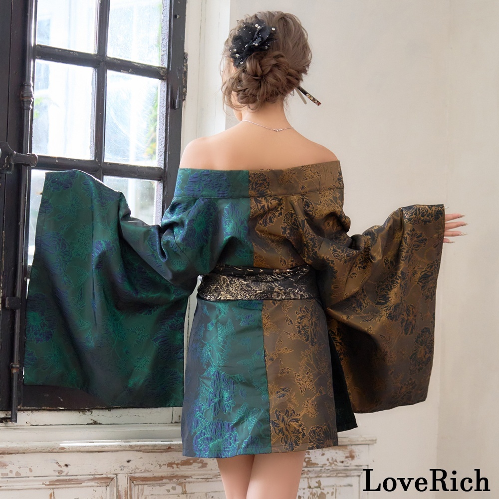 送料無料!【高級ライン】【2点セット】艶華 花柄 蝶々 ジャガード アシンメトリー 豪華 帯 花魁 着物 ドレス コスプレ ハロウィン キャバドレス [1582]