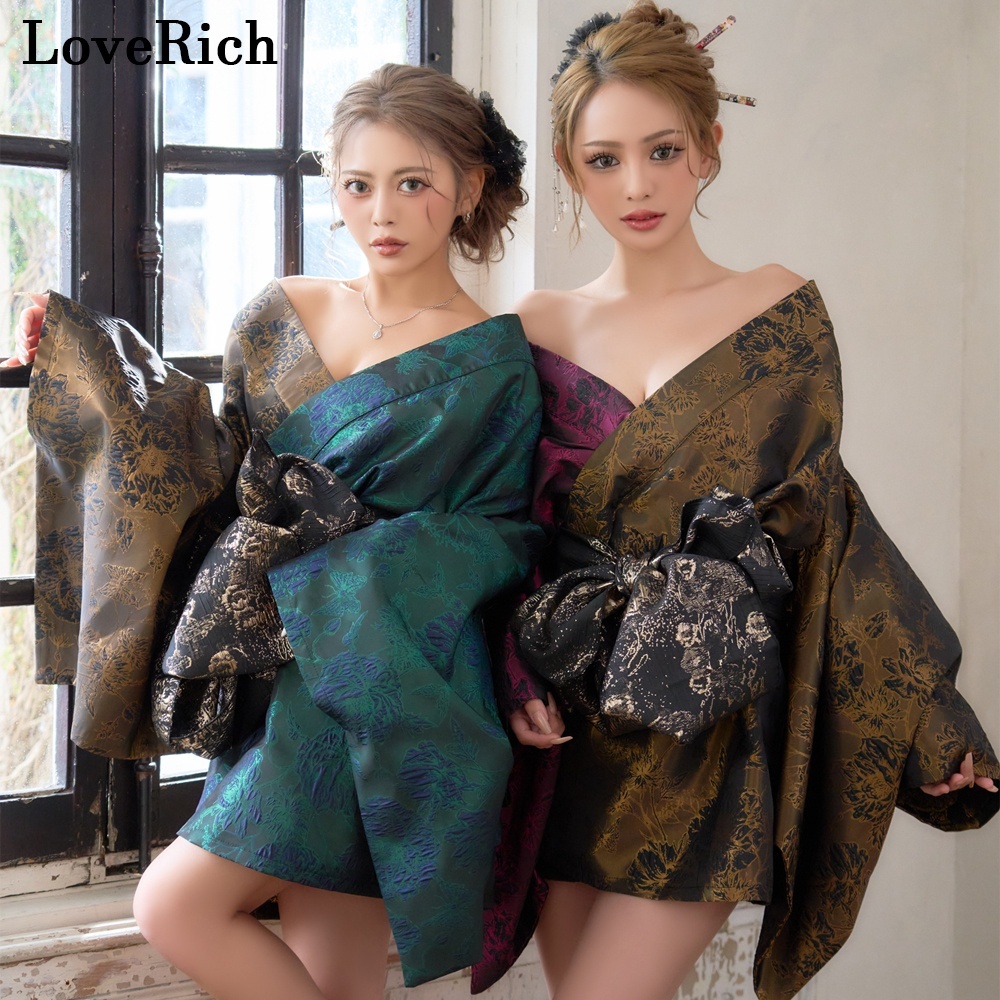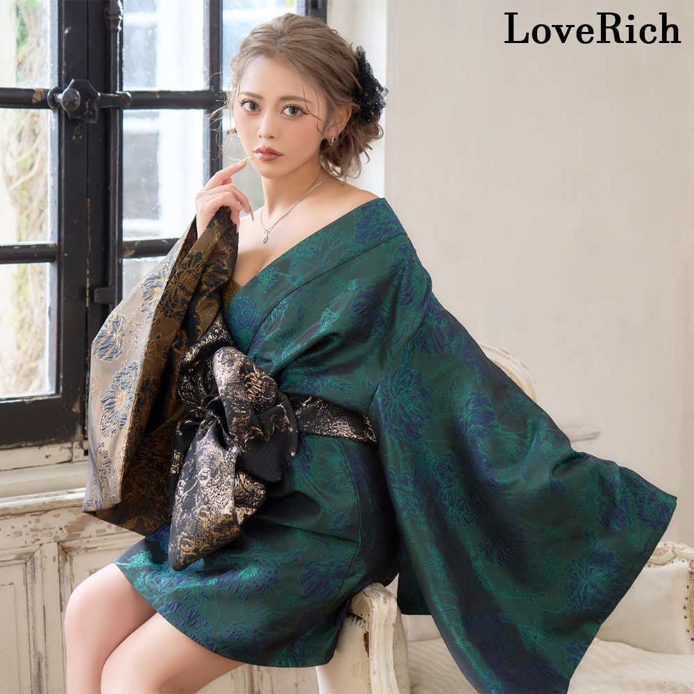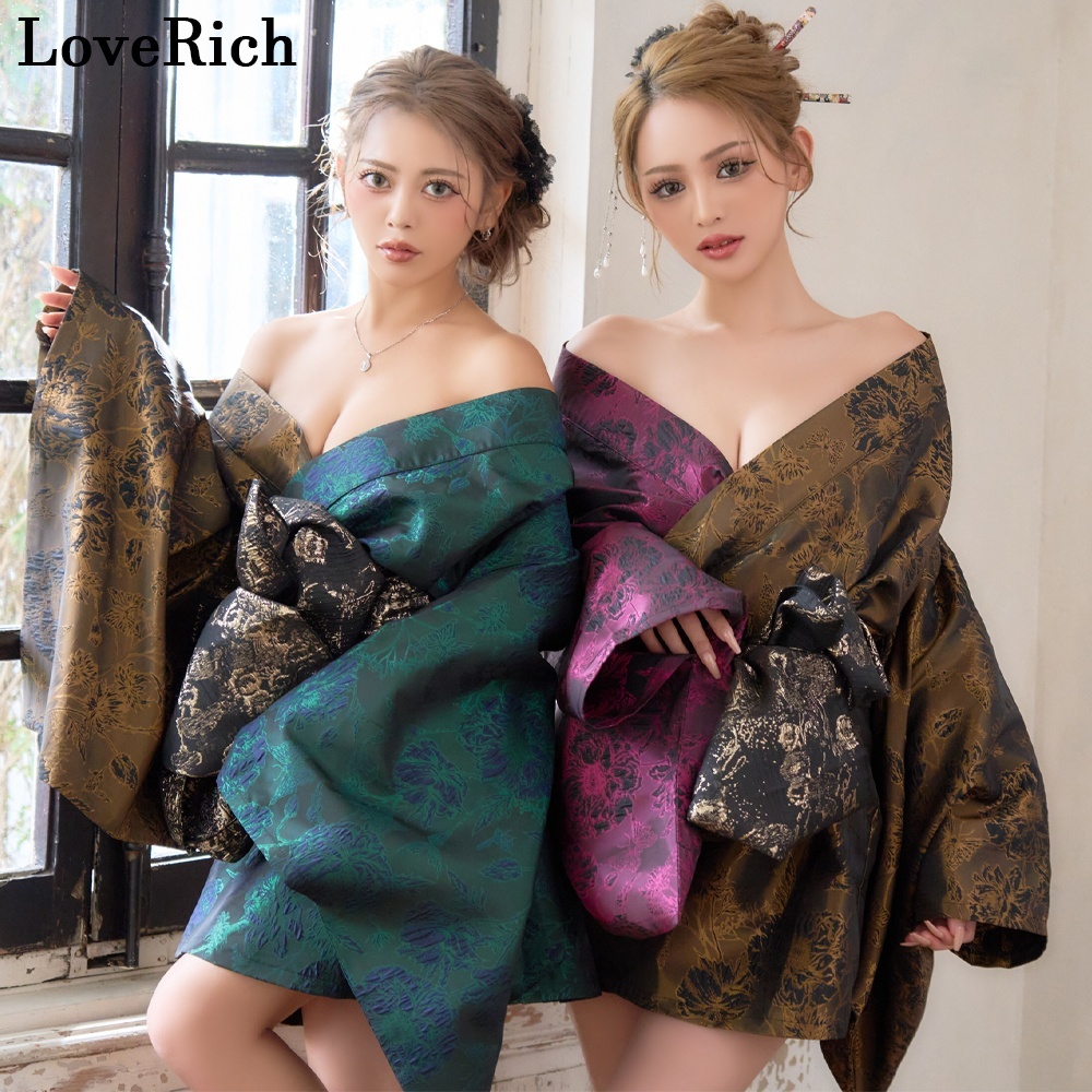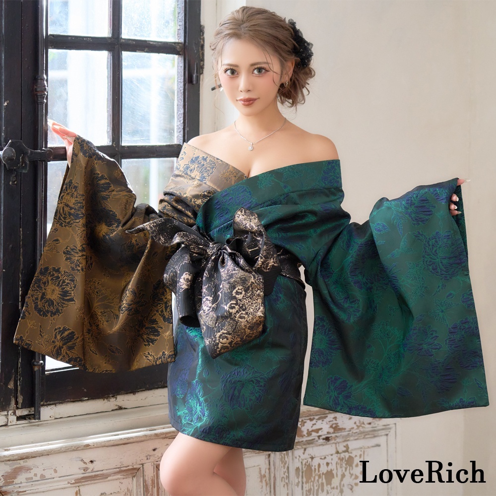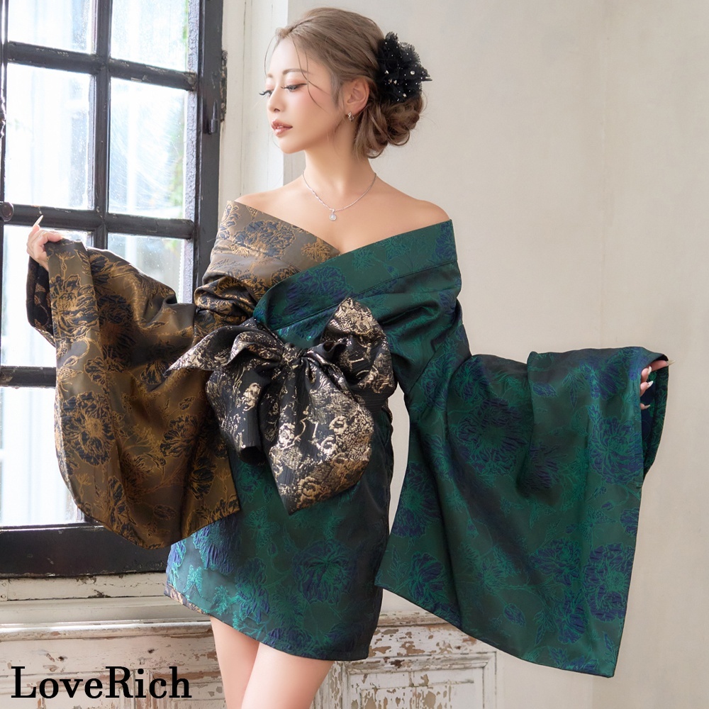 送料無料!【高級ライン】【2点セット】艶華 花柄 蝶々 ジャガード アシンメトリー 豪華 帯 花魁 着物 ドレス コスプレ ハロウィン キャバドレス [1582]