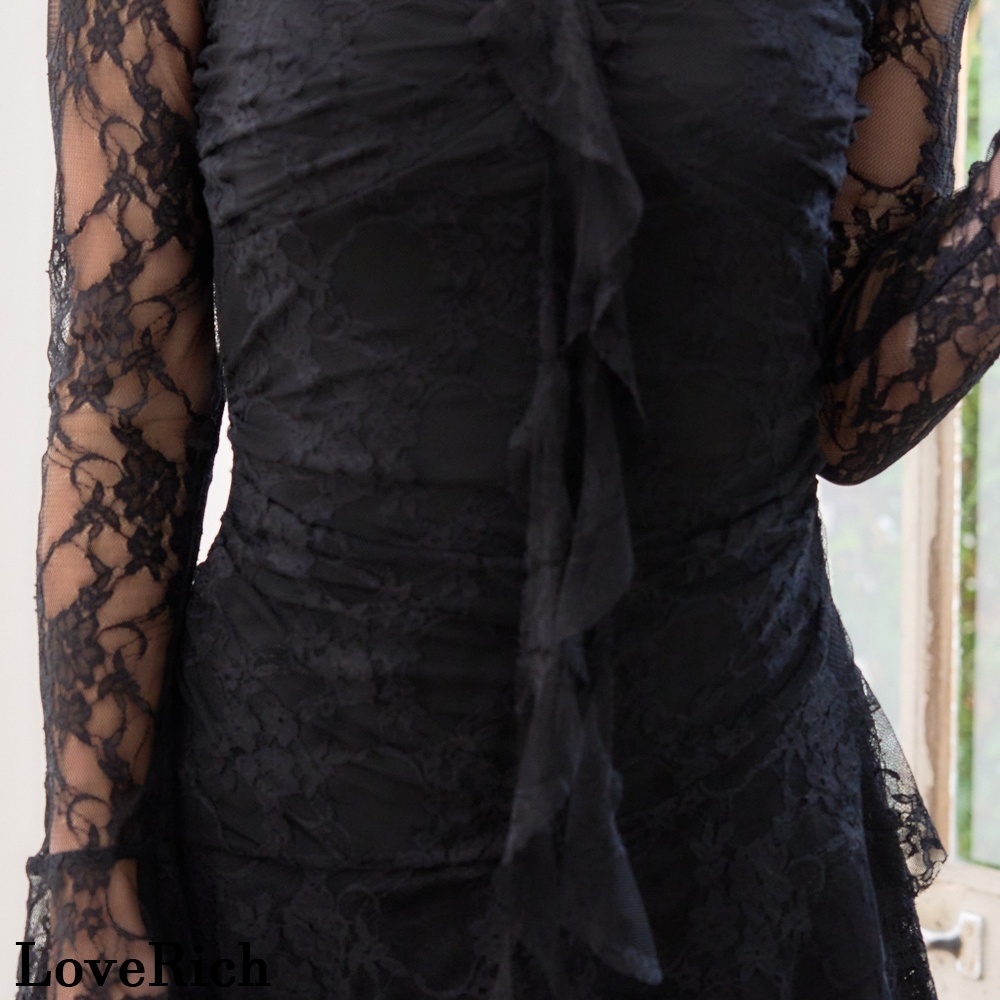 繊細な総レースが女性らしさを引き立てるエレガントなドレス。