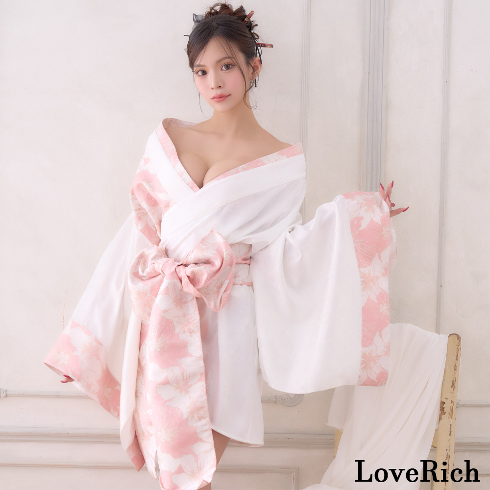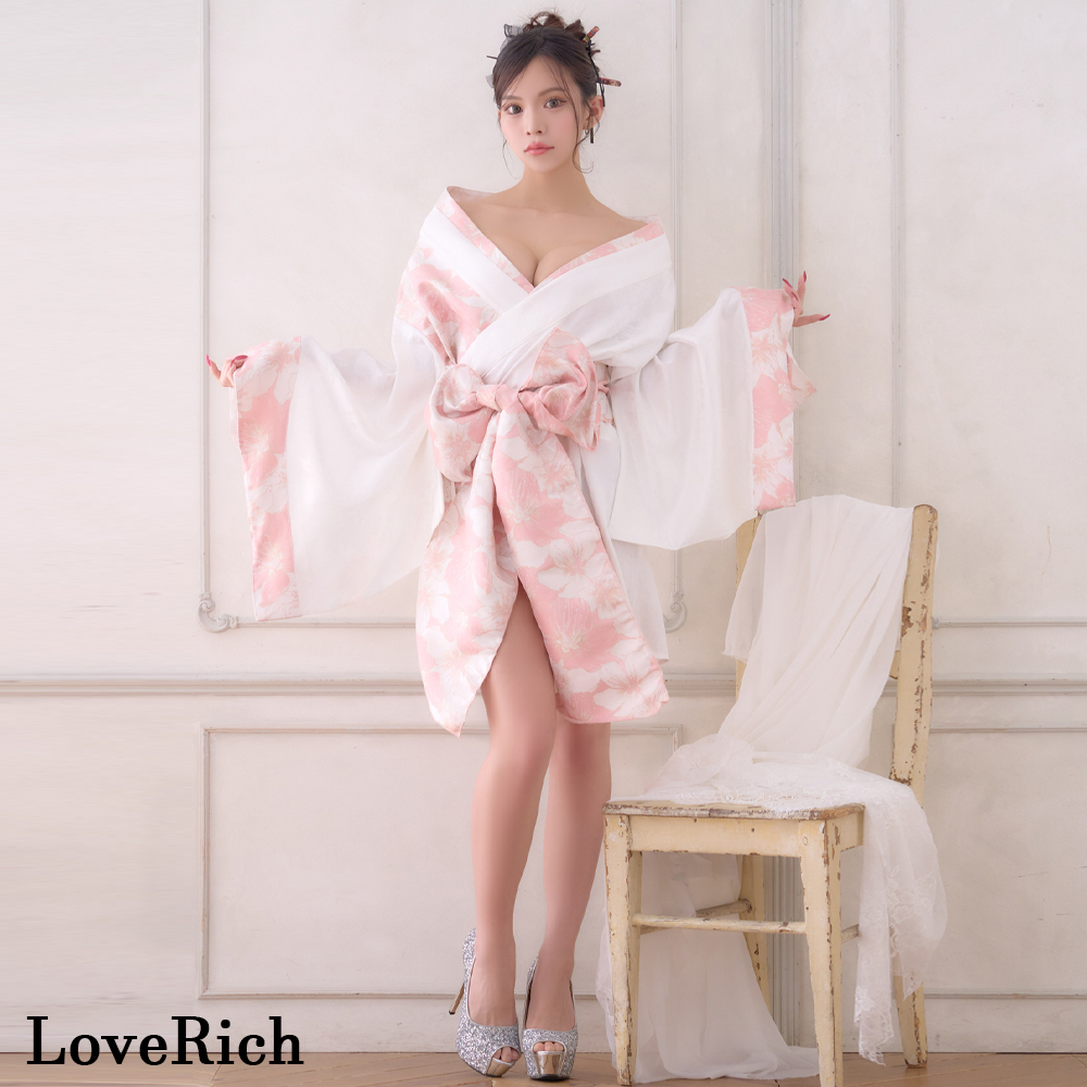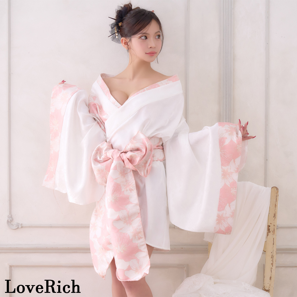 【高級ライン】【2点セット】淡彩 花柄 帯 花魁 着物 ドレス コスプレ ハロウィン キャバドレス