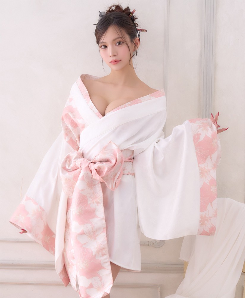 【高級ライン】【2点セット】淡彩 花柄 帯 花魁 着物 ドレス コスプレ ハロウィン キャバドレス [1523]